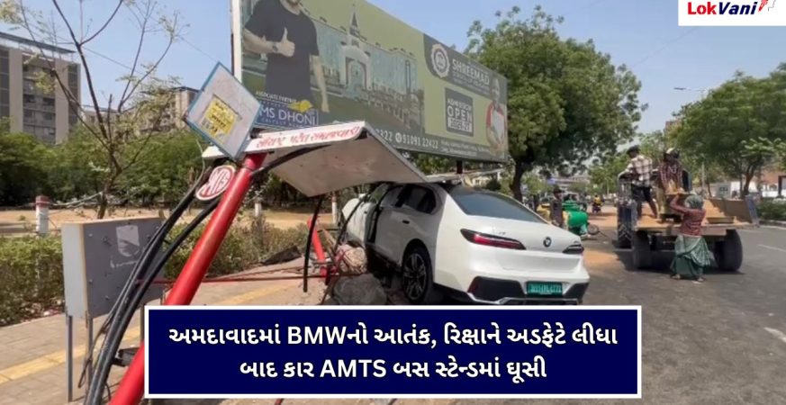 અમદાવાદ : રિક્ષાને અડફેટે લીધા બાદ કાર AMTS બસ સ્ટેન્ડમાં ઘૂસી