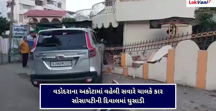 વડોદરાના અકોટામાં વહેલી સવારે ધડાકાભેર અકસ્માત, ચાલકે કાર સોસાયટીની દિવાલમાં ઘુસાડી