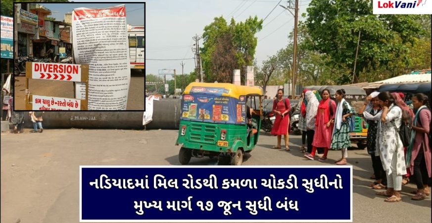 નડિયાદવાસીઓ નોંધ લેજો! મિલ રોડથી કમળા ચોકડી સુધીનો રસ્તો આગામી ૬ મહિના સુધી બંધ