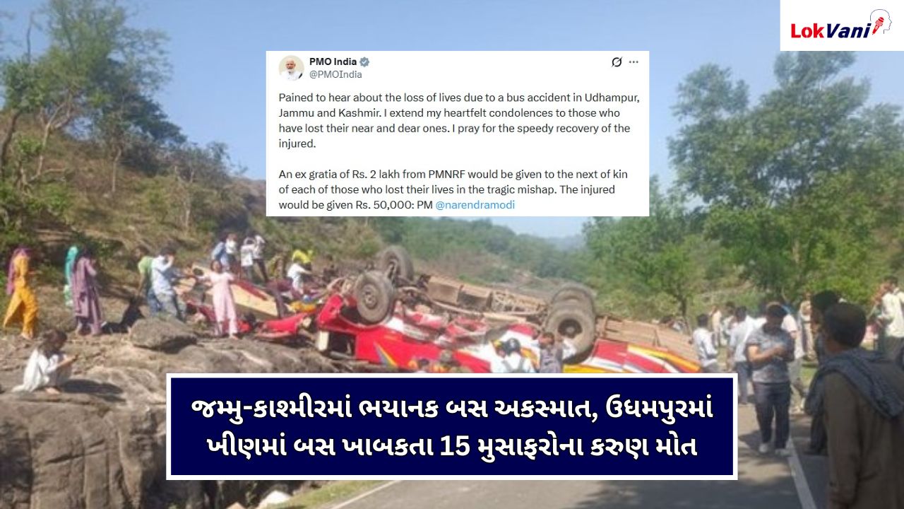 • Jammu and Kashmir : ઉધમપુરના કનોટે પાસે બસ 100 ફૂટ ઉંડી ખીણમાં પડી, PM મોદીએ વ્યક્ત કર્યું દુઃખ